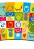 La grafica tutti frutti rappresenta una vivace scacchiera che riporta diversi colori e diverse immagini di frutta stilizzate.