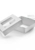 Take away box bianca quadrata in cartoncino alimentare politenato idoneo per microonde e forno ventilato.