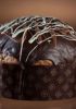 La finissima copertura di cioccolato fondente ne ricopre la sommità con strisce di cioccolato al latte in decorazione