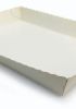 Vassoio realizzato in cartoncino-riciclato patinato e accoppiato con film in polipropilene.